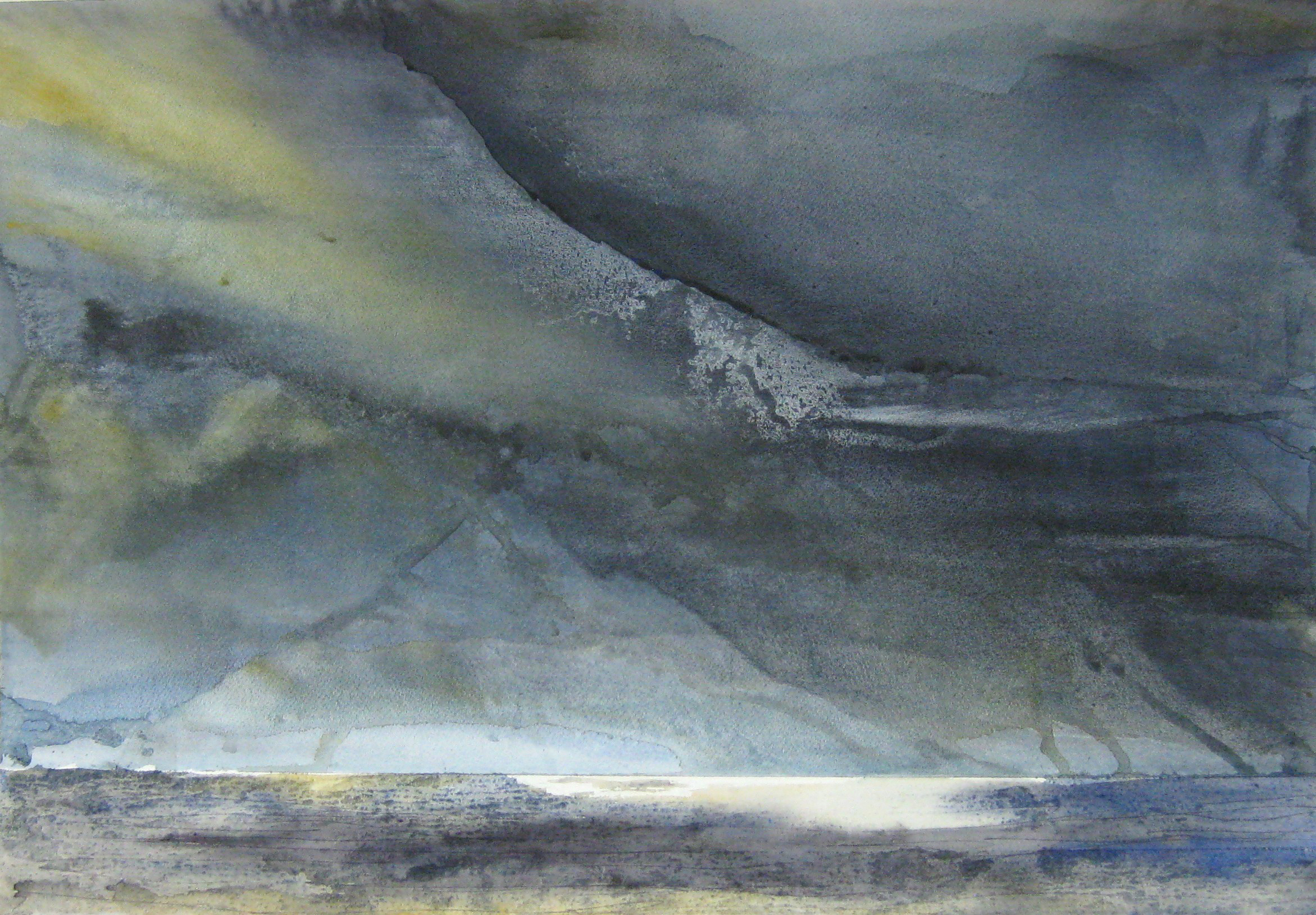 Marianne Gross maler atmosfæriske akvareller. Jo mere jeg ser af Marianne Gross’ arbejder fra de seneste år, jo mere oplever jeg, at de indgår i en mere nutidig variant af lysmaleri, som måske særlig forvaltes af nordiske akvarelmalere. Marianne Gross’ maleri befinder sig ofte nær havet. Ikke bare i en havdiset stilhed, men lige så ofte i en farvemættet stormstyrke.